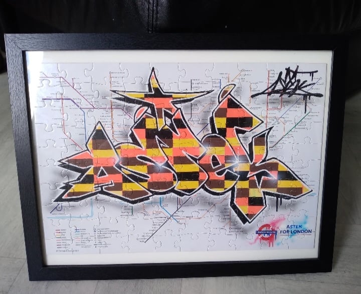 Framed hand painted district line moqquete puzzle, official puzzle from the london transport museum Size a3